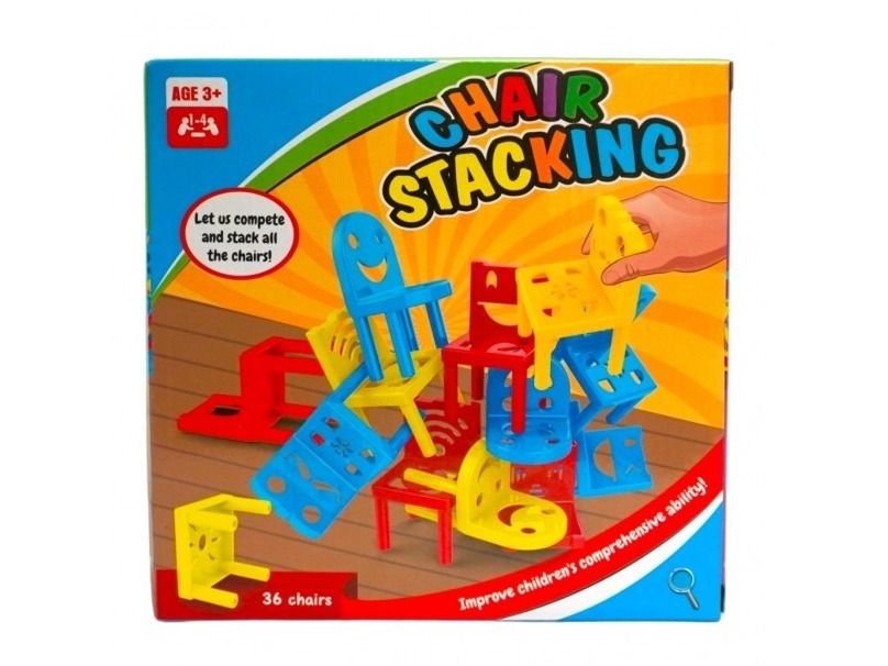 An exciting balance and stacking game! Players take turns stacking colorful chairs without toppling the pile. Great for improving focus and motor skills. Play solo or with friends. Includes: Set of colorful plastic chairs Age group: 3+