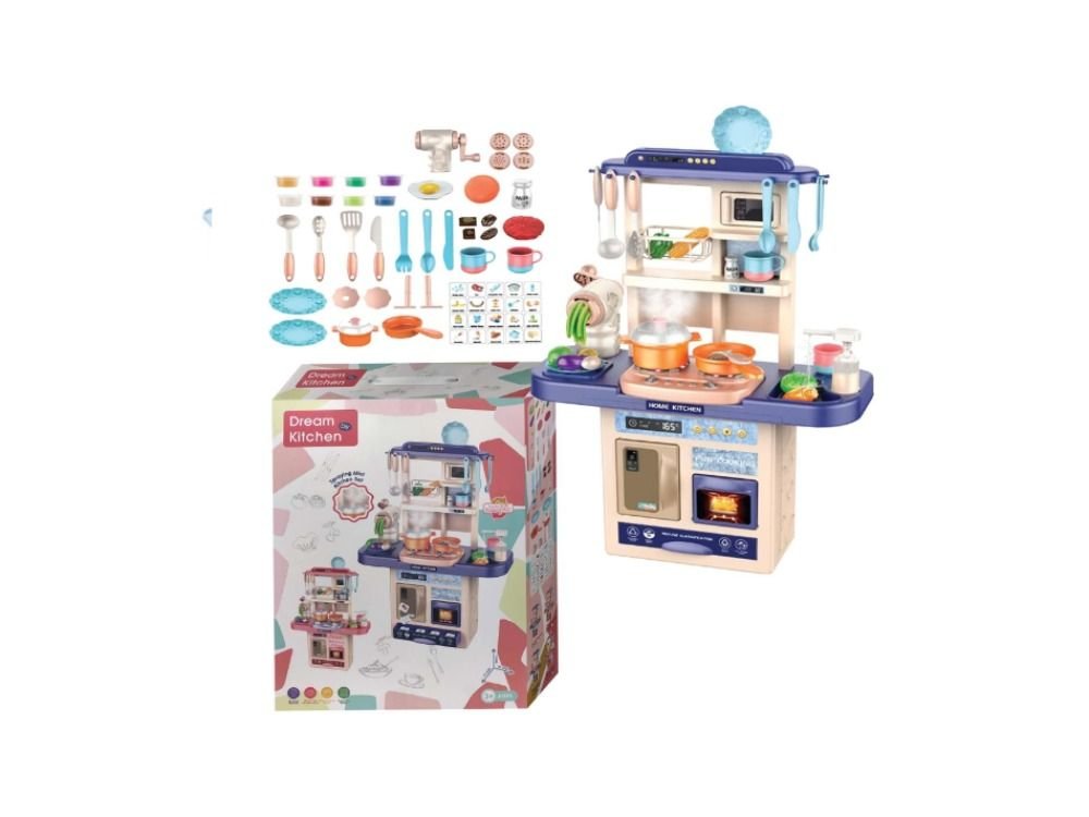 Dream kitchen playset – **Complete kitchen features**: Stove, sink, oven and refrigerator. – **Bright and colorful design**: Encourages imaginative play. – **Sturdy construction**: Designed to be durable and long-lasting. – **Sensory stimuli**: Engages the senses to enhance play. – **Discovery and exploration**: Fosters curiosity and learning. – **Motor skills development**: Helps develop fine motor skills. – **Cognitive skills**: Encourages problem-solving and creativity. – **Steam feature**: Adds a fun element to play. – **Lights and Sounds**: Enhances the play experience with interactive elements. **Dimensions**: 75cm × 46.5cm × 17.3cm This playset is perfect for young chefs to explore their cooking creativity!