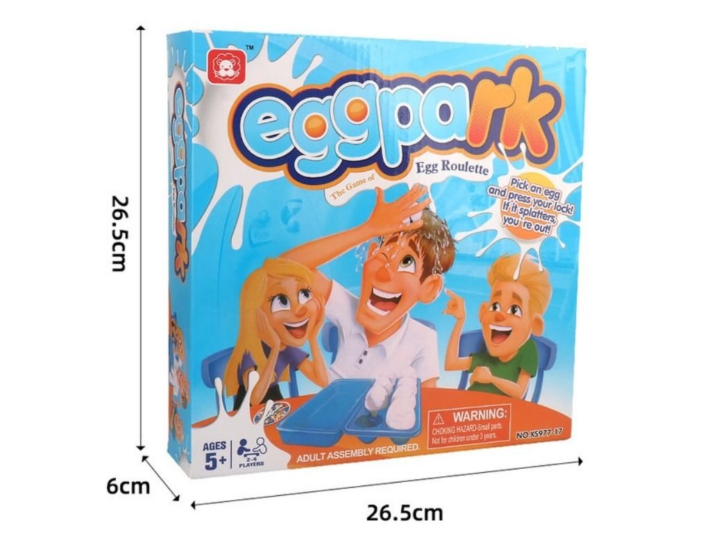 A hilarious game of chance and surprise! Players take turns choosing plastic eggs—some are filled with water, others are empty. Crack it on your head… If it’s filled, you lose that round! Perfect for family gatherings and fun moments. How to play: Fill some eggs with water, leave others empty. Spin the roulette and pick an egg. Crack it on your head—get wet and lose! Age group: 5+ Players: 2 or more Includes: Plastic eggs + spinning roulette