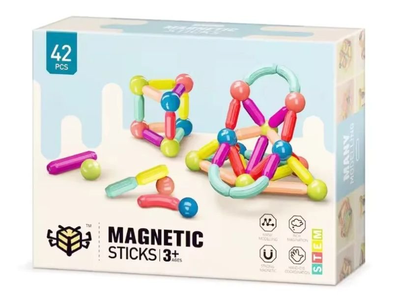 An innovative educational building toy designed to develop children’s motor and mental skills. Consisting of 76 magnetic pieces, including colorful sticks and balls, it allows kids to build various geometric shapes and 3D designs, enhancing their creativity and logical thinking.