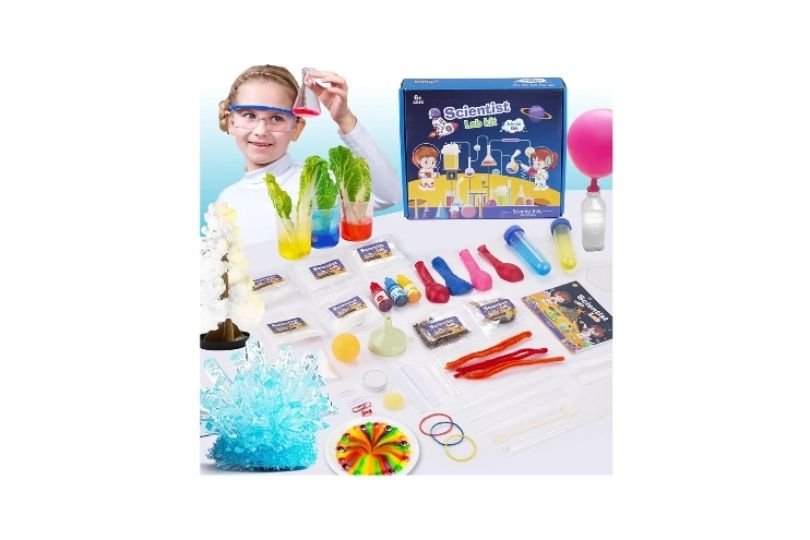 Science Kits for kids ages 8 and above provide an engaging way for children to learn the scientific process and important chemistry fundamentals while safely conducting experiments. This comprehensive kit includes popular science experiments such as making bubble water, color relay, inflating a balloon using a bottle, volcanic eruptions, creating a solid rainbow, and a candle water pump. It’s an excellent resource for sharpening their science and math skills through hands-on learning”