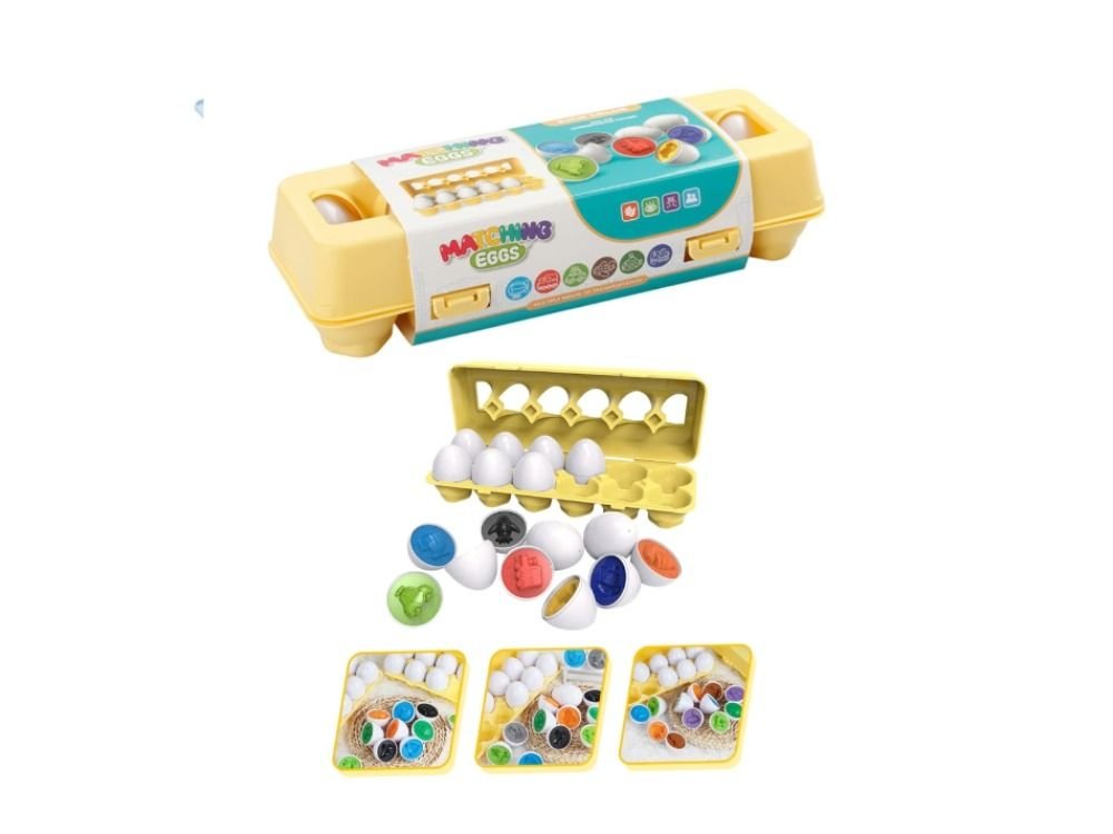 Shape Matching: 12pcs Pair Eggs for Kids – **Educational Color Selection Toy**: Helps children develop observation, concentration, and memory skills, preparing them for future learning. – **Color and Vehicle Recognition**: Enhances children’s ability to recognize colors and various traffic vehicles. – **Shape Matching Eggs**: Bright and colorful designs stimulate children’s interest in vehicle and color matching. – **Car Playset**: Perfectly sized for little hands, making it easy for kids to hold and play. – **Toy for Kids**: Includes various colors and vehicle shapes, suitable for enhancing color cognition and vehicle recognition. This fun and educational game is a great gift for kids!